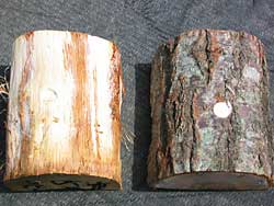 活着したシイタケ菌が細胞分裂を繰り返しながら原木の中に広がってきました。